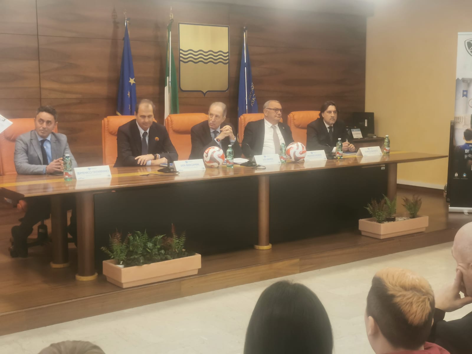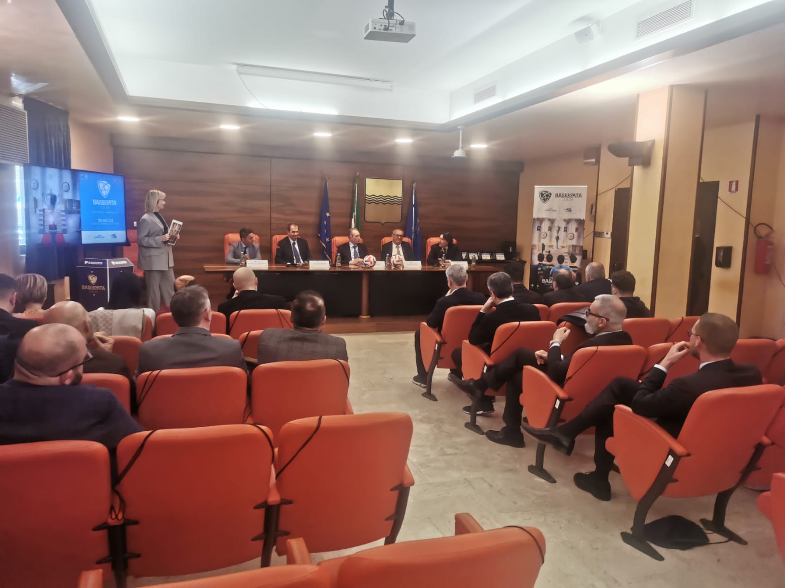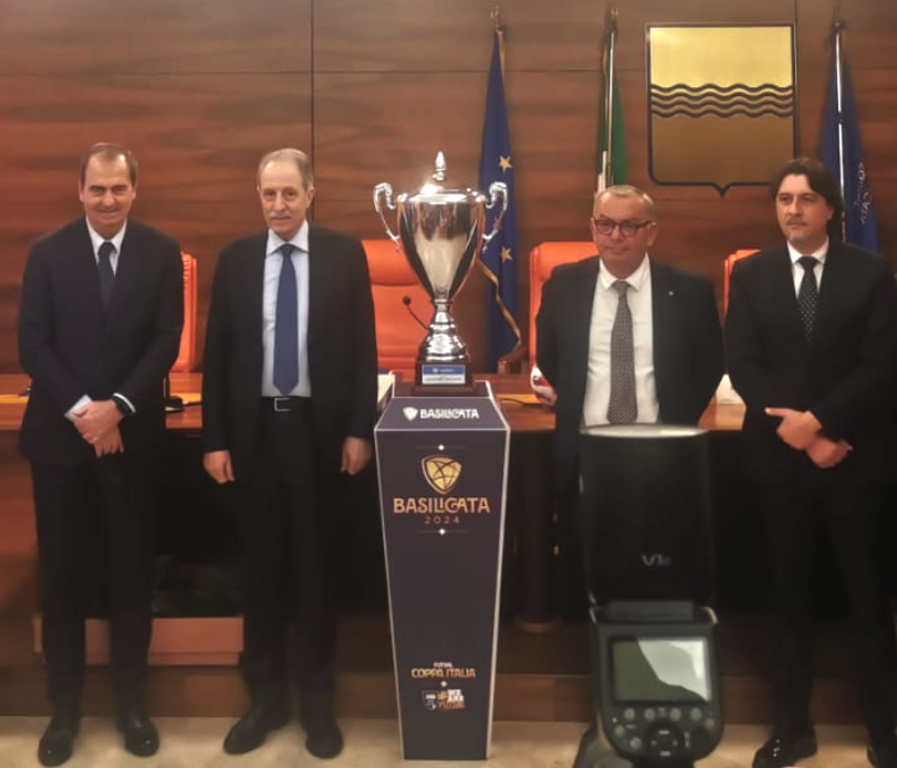 E’ stata la Sala Inguscio della sede della Regione Basilicata a Potenza, ad ospitare il meeting di apertura di quello che dovrebbe essere il maxi-evento (così almeno è stato ribattezzato, sic!) del futsal di questa stagione: solamente 24 le persone sedute davanti al tavolo delle personalità, dove hanno presenziato il numero uno della Divisione Calcio a 5, Luca Bergamini, assieme al presidente della Regione Basilicata, Bardi, all’assessore regionale Casino e ai rappresentanti delle amministrazioni comunali di Policoro e Bernalda che ospiteranno le competizioni al termine delle quali verranno assegnate ben sei coccarde tricolori.