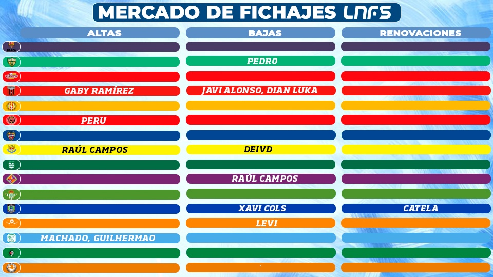 Ad oggi tra gli arrivi più significativi per la Liga, da ricordare quelli del centrale brasiliani Peru, operazione firmata dal Jimbee Cartagena.