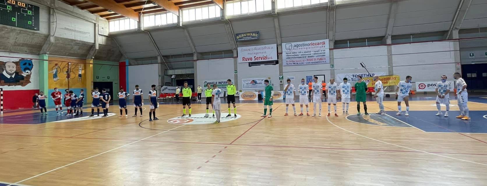 Al Pala Colombo di Ruvo, il Dream Team (che resta al comando con 10 punti) passa subito in vantaggio con Solimini e Fininho, ma Lovino e Losito ristabiliscono la parità per la Florigel: succede tutto nel primo tempo.