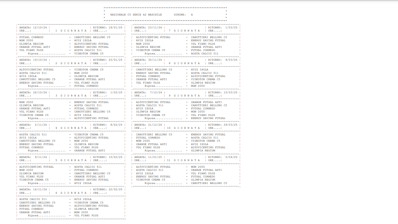IN GALLERY 1 IL CALENDARIO COMPLETO DEL GIRONE A