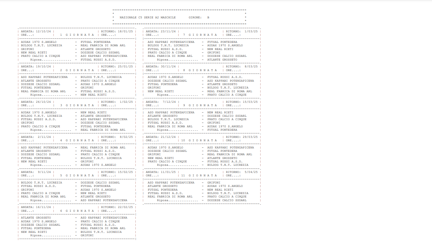IN GALLERY 2 IL CALENDARIO COMPLETO DEL GIRONE B