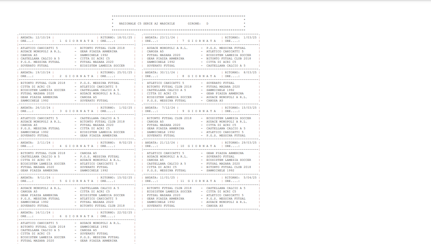 IN GALLERY 4 IL CALENDARIO COMPLETO DEL GIRONE D