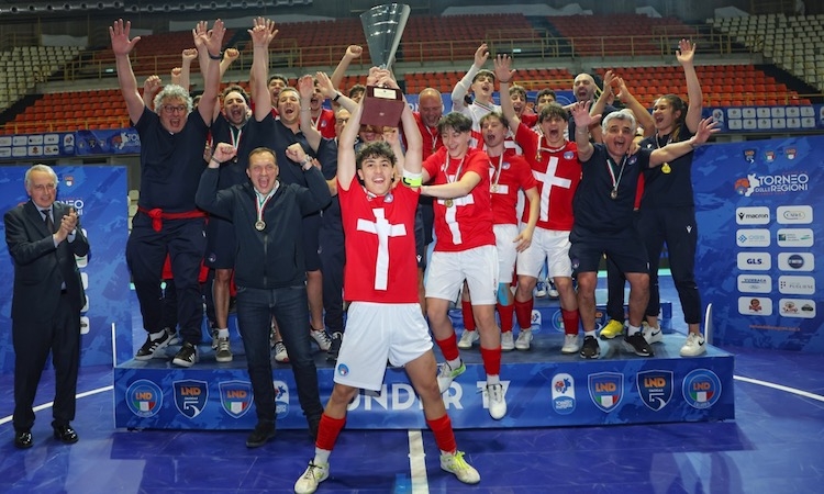 L’Emilia Romagna (nella foto) vince il suo terzo titolo nelle ultime quattro edizioni del Torneo delle Regioni di calcio a cinque per la categoria Under 15: era già accaduto nel 2018 e nel 2019 prima che la manifestazione venisse interrotta a causa del Covid e ripresa solamente l'anno scorso.