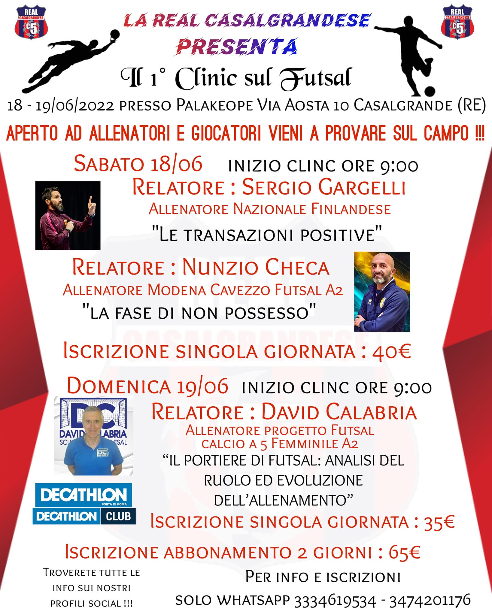Si avvicinano le date del 18 e 19 giugno, quando Casalgrande sarà protagonista nell’ospitare il primo clinic di futsal in Emilia, due giornate da non perdere con allenatori esperti e di assoluta qualità a sedersi sul palco dei relatori.