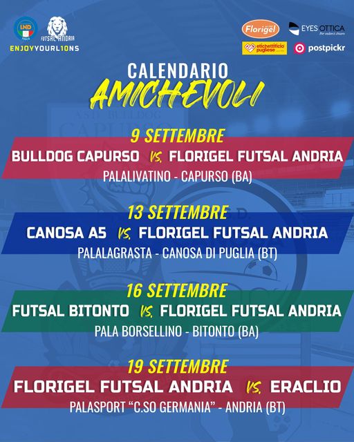 E' davvero folto il calendario di amichevoli che saranno svolte prima dell'inizio del campionato di serie C1 dalla Florigel Futsal Andria.