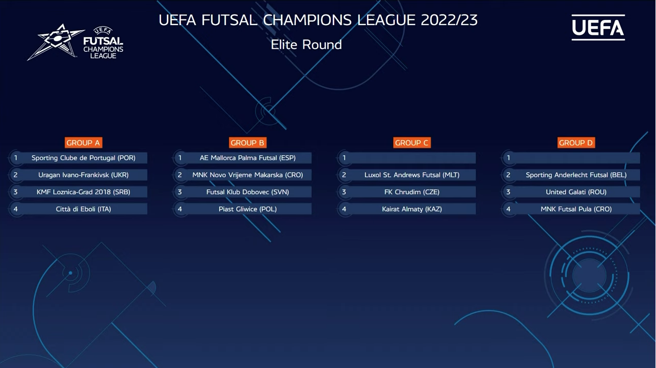 Nel gruppo 3, oltre ai titolatissimi kazaki del Kayrat (alla loro diciannovesima presenza: record assoluto), ecco i portoghesi del Benfica, i cechi del Chrudim e i maltesi del Luxor St’Andrews, che per la prima volta portano il futsal dell’isola al centro del Mediterraneo alla prestigiosa rassegna continentale, conquistata chiudendo il Main Round alle spalle del Barça.