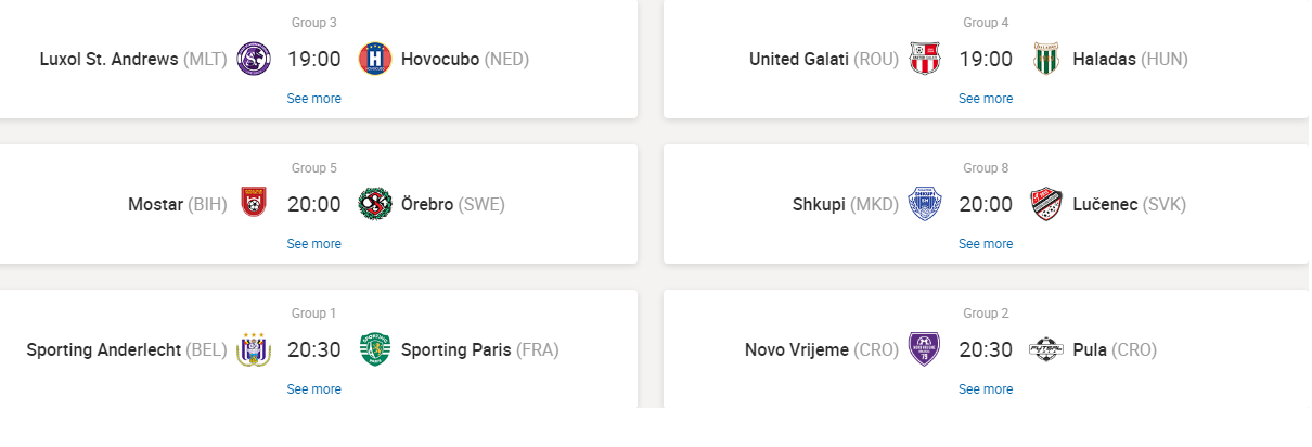 Tanta attesa anche per il derby tutto croato tra Pula e Novo Vrijeme e per la sfida tra Uragan e Benfica. Lo Sporting Lisbona nel gruppo 2, infine, saggia le ambizioni dell'Ayat, temibile compagine del Kazakistan. Per le sfide di oggi pomeriggio vedi galleria 1, per le partite di questa sera vedi galleria 2.