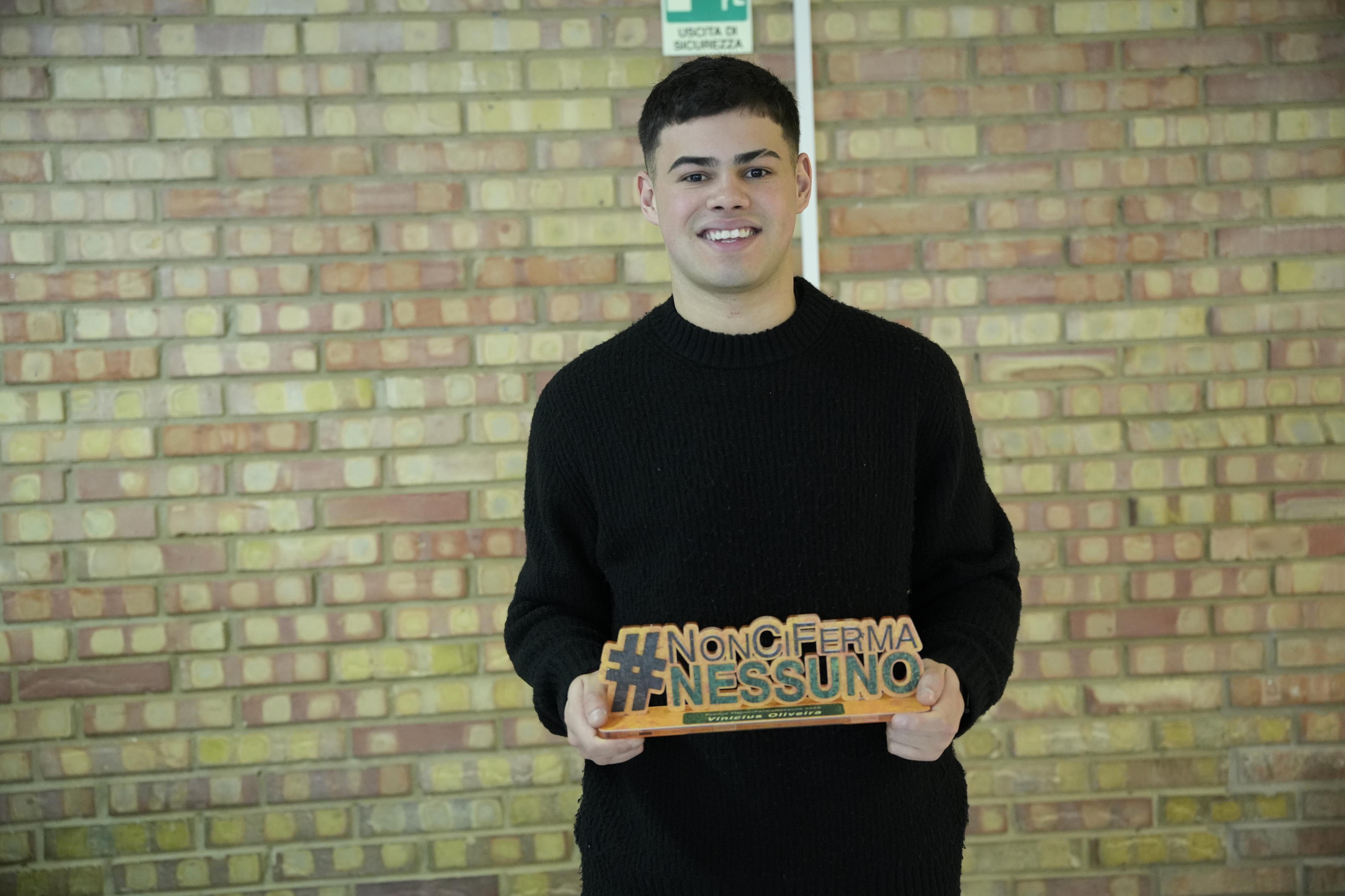 In occasione della seconda tappa della 12esima edizione della campagna sociale motivazionale #NonCiFermaNessuno di Luca Abete all’Università degli Studi del Molise, il portiere brasiliano del CLN CUS Molise, Vinicius Oliveira, ha ricevuto il Premio #NonCiFermaNessuno.