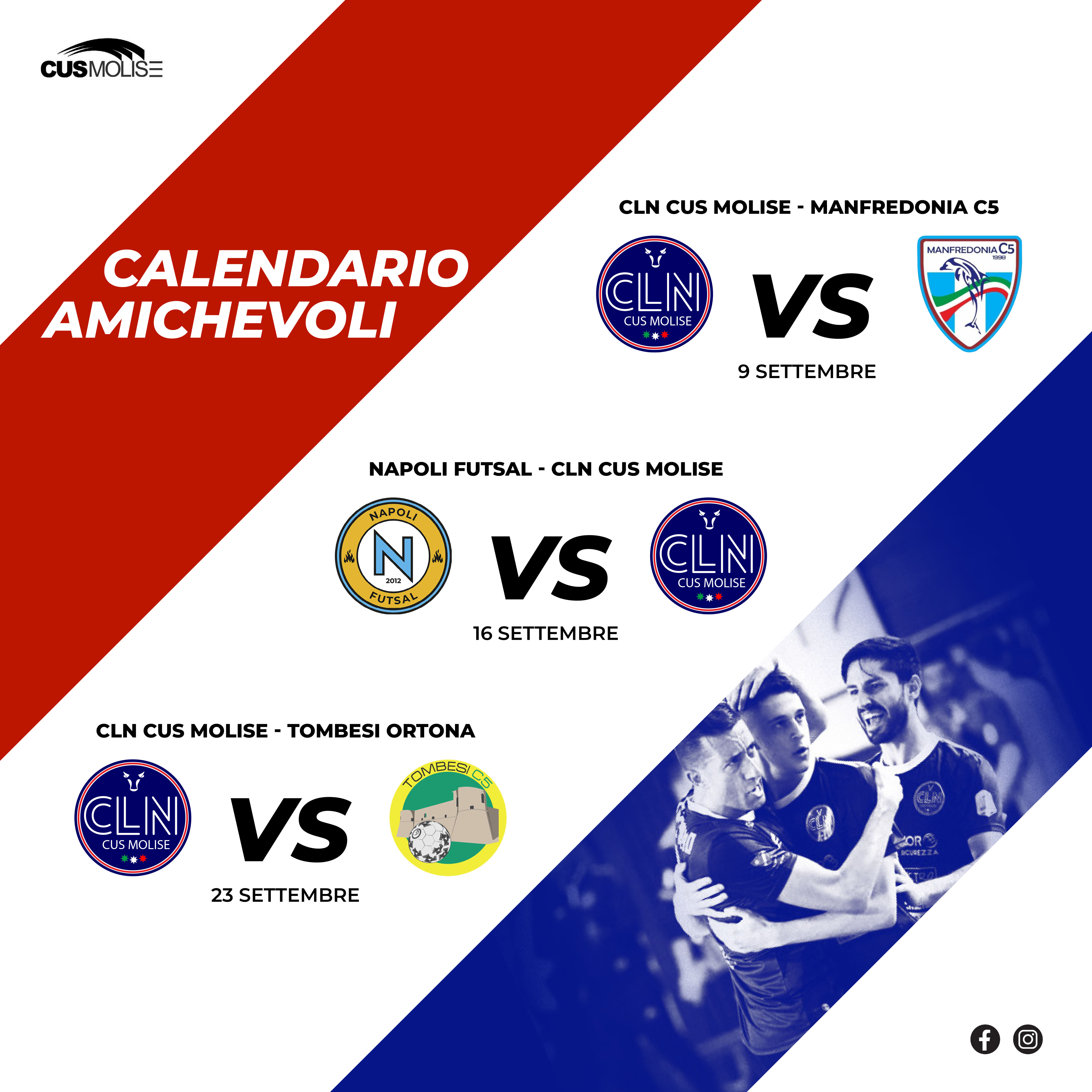 Il 23 settembre, poi, a una settimana esatta dallo start del torneo, al Palaunimol arriverà la Tombesi Ortona del presidente Alessio Tombesi. Le due società, quella gialloverde e quella rossoblù sono legate da un grande rapporto. Nelle stagioni passate le due squadre si sono spesso affrontate in campionato dando vita a splendidi incontri sempre nel segno della correttezza e della sportività. Nelle file abruzzesi milita, tra gli altri anche Jonathan Debetio che nelle ultime stagioni è stato un pilastro dei molisani. Un precampionato di spessore, dunque, per il CLN Cus Molise che avrà modo di mettere benzina nelle gambe e presentarsi al meglio al via ufficiale del torneo.