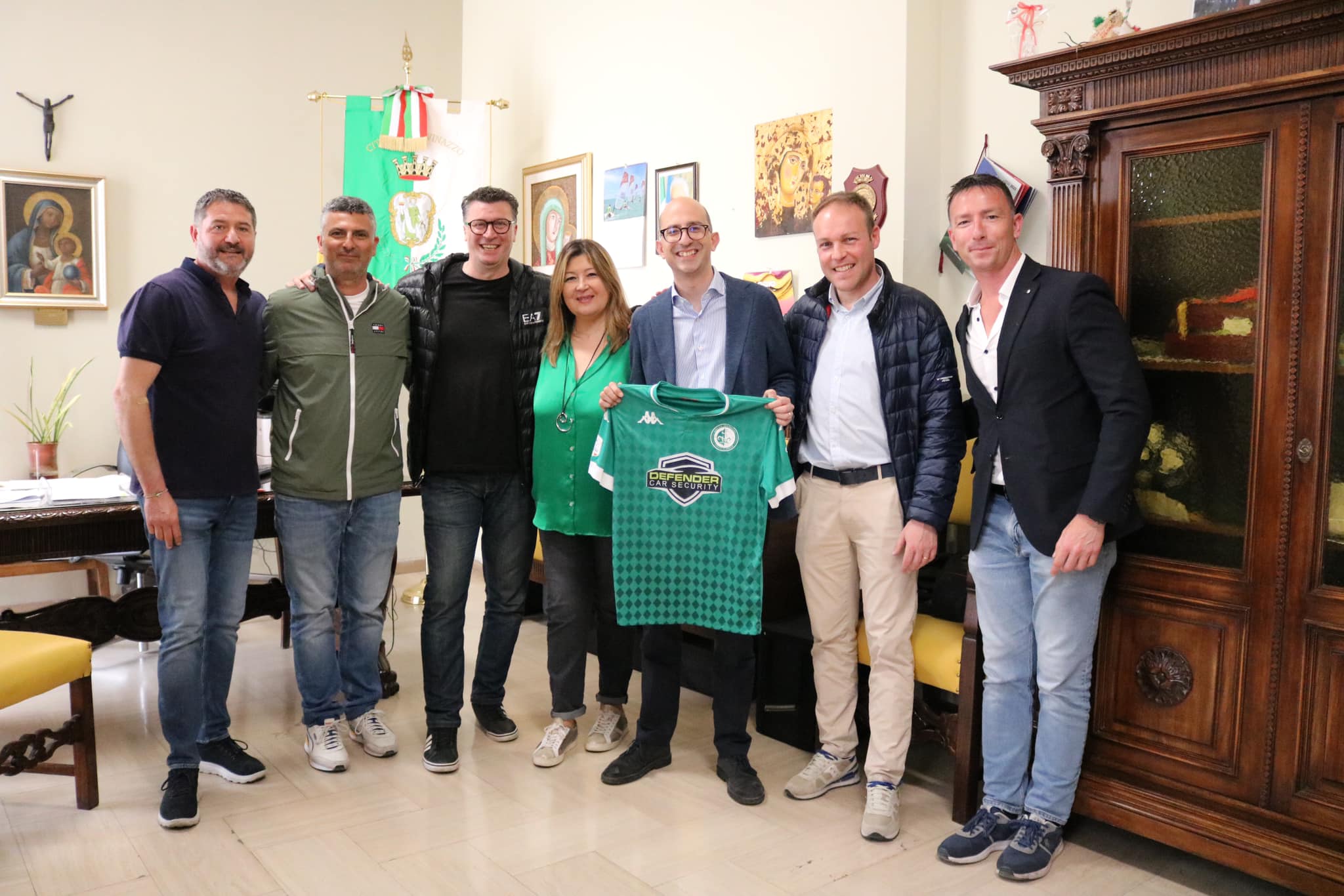 Nella mattina di ieri il sindaco Michele Sollecito e alcuni componenti della Giunta e del Consiglio Comunale tra cui l'assessore allo Sport del Comune di Giovinazzo, Vincenza Serrone, hanno ricevuto una delegazione del Defender Giovinazzo C5 composta dal presidente Antonio Carlucci, dal direttore sportivo Gianni Lasorsa, dal team manager Enzo Marzella e dai giocatori Piscitelli (cap.), Binetti, Marzella, Fermino, Ferreira Praciano, Silon Junior e Menini freschi di promozione in serie A2 Elite.