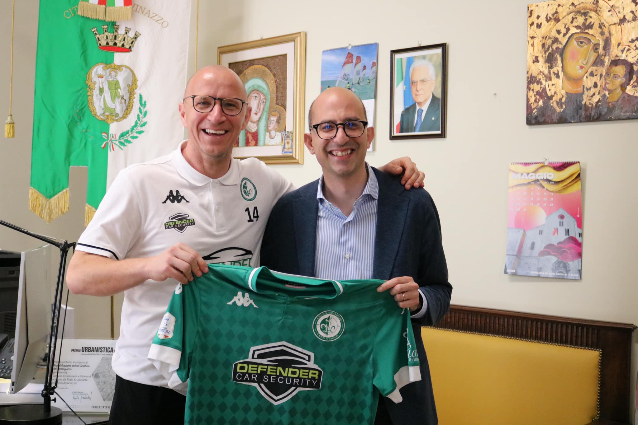 Le Istituzioni si sono complimentate con squadra e società per la promozione in A2 Elite. Nell'occasione il Defender Giovinazzo ha consegnato una maglia ufficiale della squadra per ringraziare il primo cittadino Michele Sollecito che ha ricambiato con un quadro raffigurante uno scorcio della città. Il sindaco, inoltre, ha voluto omaggiare il lavoro svolto anche a livello giovanile dal club biancoverde che, come noto, promuove partecipando a numerosi campionati a livello nazionale portando sempre più in alto il nome di Giovinazzo in tutta italia.