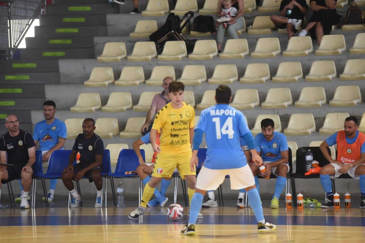 Siamo ancora nella pre season ma è già un'ottima Pirossigeno Cosenza quella ammirata oggi sul parquet del PalaJacazzi di Aversa. Al cospetto del Napoli, formazione che ha spadroneggiato per larghi tratti dello scorso campionato di Serie A, i lupi di mister Tuoto hanno fatto un figurone. 3-3 il risultato finale con gli ospiti che hanno ribaltato il doppio svantaggio grazie alle marcature di Poti e di Bruno Petry, autore quest'ultimo di una doppietta, prima di farsi acciuffare nuovamente nel finale.