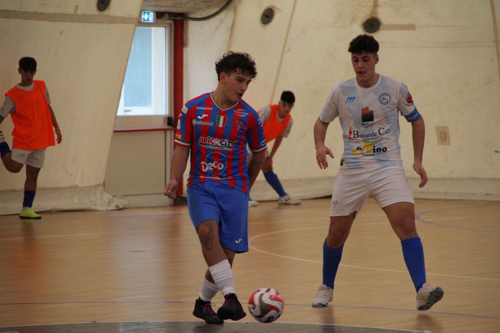 i Flavio Toscano. Pivot classe 2006, dopo tanti anni giocati a calcio, scopre la passione per il Futsal giocando per due stagioni con la Meta Catania (in foto di copertina). Adesso è pronto a questa nuova sfida in biancazzurro.