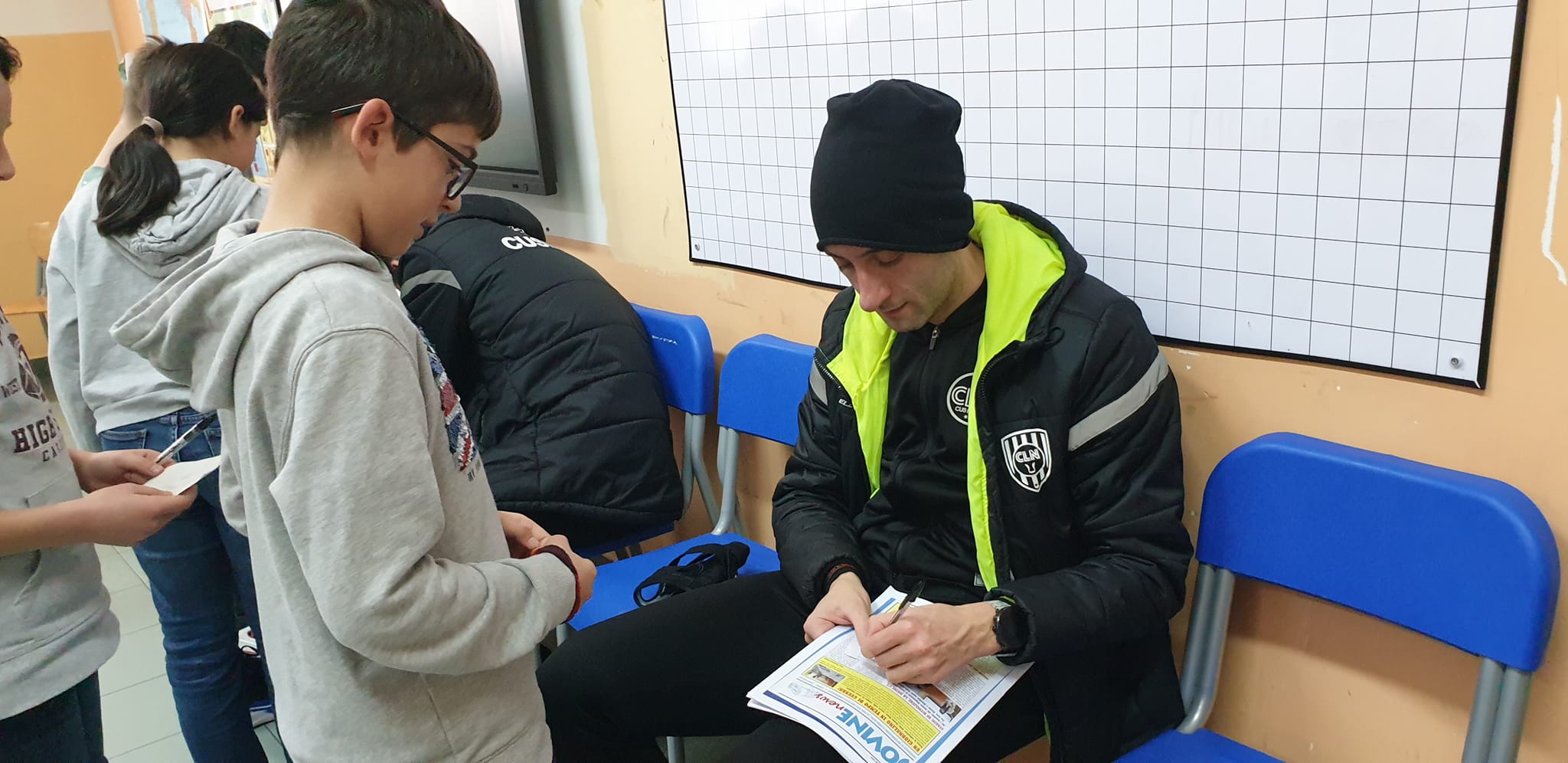 Al termine i bambini hanno chiesto gli autografi ai tre giocatori che, con grande entusiasmo, non si sono sottratti dimostrando di essere campioni non solo nello sport ma anche nella vita di tutti i giorni (in gallery i tre giocatori mentre firmano gli autografi). I bambini, al suono della campanella, hanno lasciato l’aula fieri e felici di aver condiviso qualche ora con i giocatori. Il loro sorriso e la loro felicità sono stati lo spot più bello per la nostra società e per il futsal in generale.