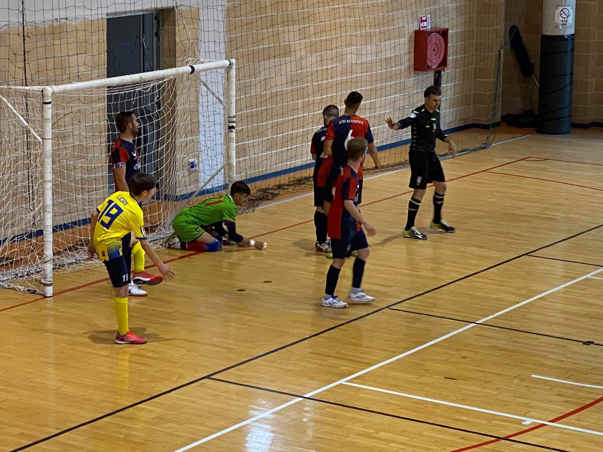 LA CRONACA - Parte forte l'AMB che si porta subito sul 4-0 grazie ai gol di Campus (bel destro a giro), Collepardo (sfruttando il portiere di movimento) e la doppietta di Ricci su altrettanti assist dell'ispirato Campus. Dopo il gol dell'Aranova firmato da Ciliberto, i locali realizzano altre tre marcature ancora con Collepardo, Luciani e Di Palma chiudendo la prima frazione di gioco con un netto 7-1.