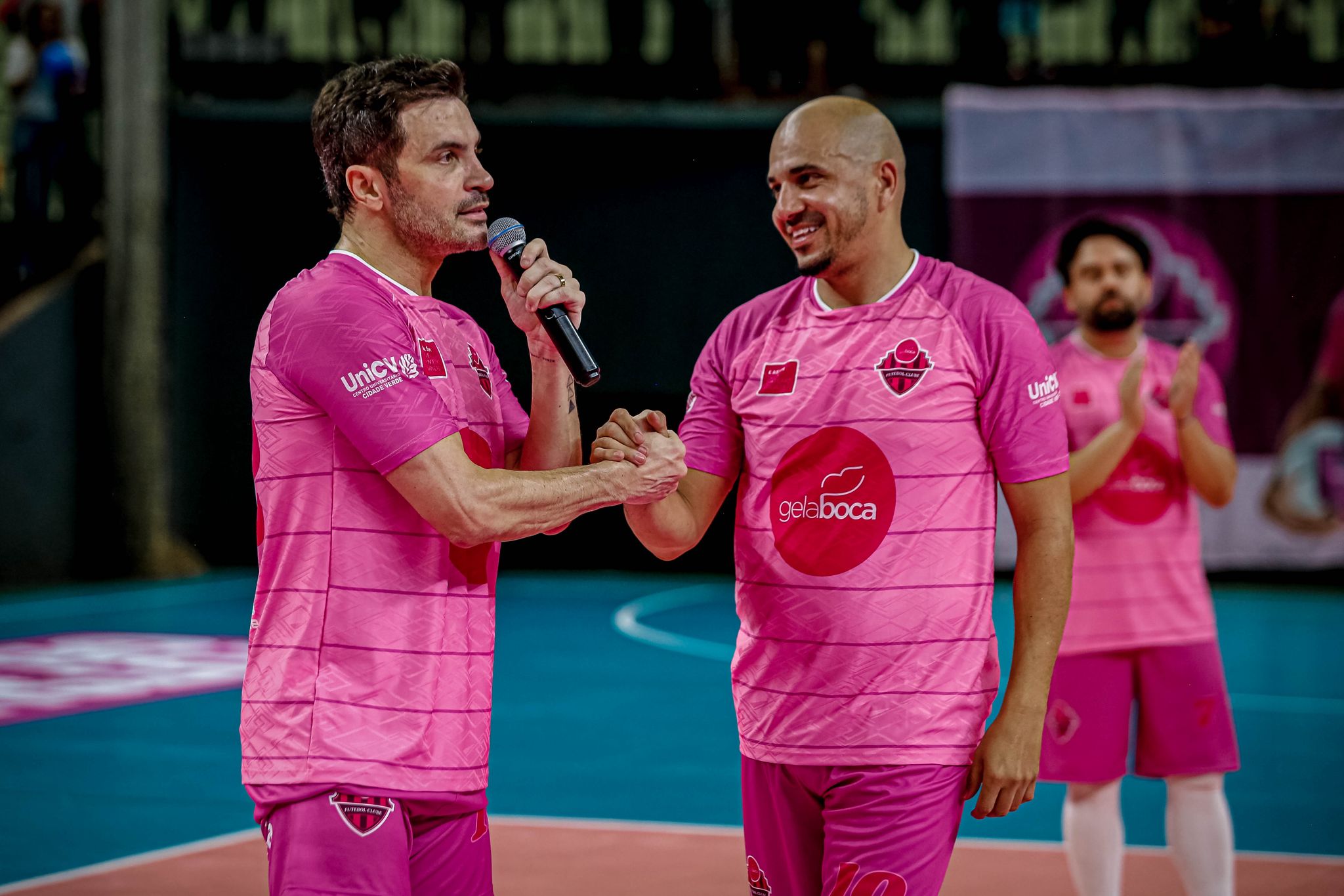 E lo ha fatto in una vera e propria parata di stelle, in un palasport “Chico Neto” di Maringà, la sua città natale, in cui sono accorsi 4000 spettatori per tributargli il più caldo e coinvolgente abbraccio che uno sportivo può sperare. E con lui c’erano tanti campioni dello sport che hanno raccolto l’invito di tributare a Vampeta il saluto più bello e partecipato che poteva esserci. Al suo fianco un certo Falcao, la stella delle stelle del pallone a rimbalzo controllato, che ha ringraziato pubblicamente Vampeta per il contributo che ha dato all’affermazione del futsal paranaense (foto in gallery 1).
