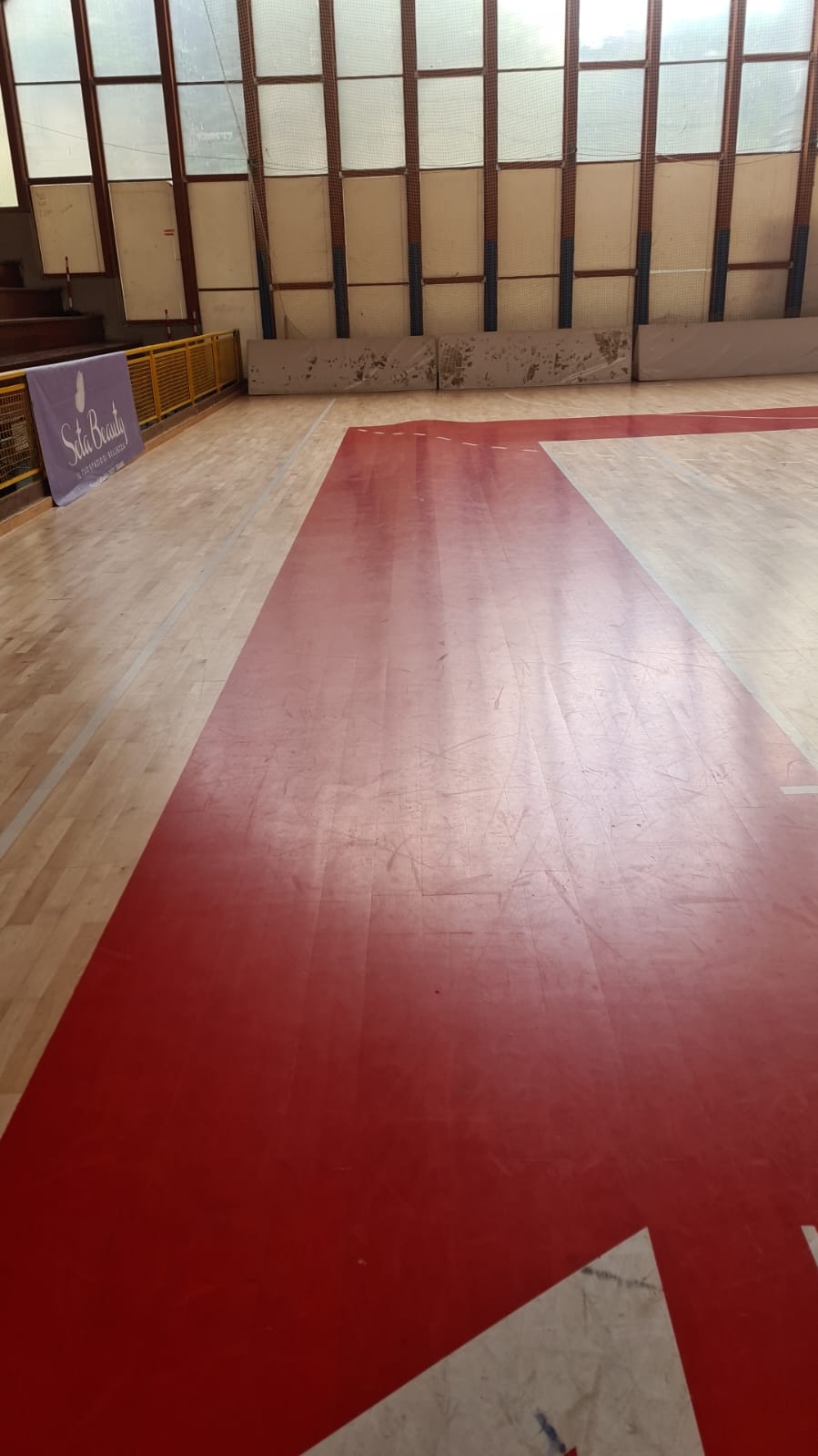 Già prima dell’orario fissato per l’inizio della gara, i dirigenti della Lisciani erano intervenuti per cercare di rimediare ai problemi causati dalle infiltrazioni verificatesi per l’ondata di maltempo che, come tutto il mondo sa, ha colpito la fascia orientale della Penisola provocando un disastro alluvionale senza precedenti in Romagna e causando problemi non indifferenti anche lungo la costa marchigiana e oltre. Nel caso specifico, hanno sostenuto i dirigenti della Lisciani, il rigonfiamento del fondo lungo la parte laterale sarebbe stato provocato dall’umidità diffusasi nel terreno circostante il torrente Vezzola che scorre nei paraggi del complesso sportivo dell’Acquaviva (di proprietà comunale e gestito dalla locale società di basket, con la Lisciani solo affittuaria negli orari di utilizzo).