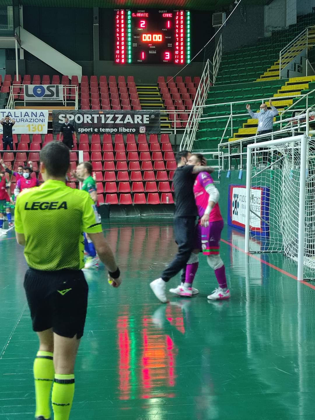 LA CRONACA - Prime battute con la Came che opera un pressing piuttosto asfissiante, la partita ha un sussulto dopo 6 minuti quando Ugherani si fa ribattere la conclusione dall'ottimo Perez che salva il risultato. Gli ospiti sembrano prendere sempre più campo, mentre i padroni di casa provano a rendersi pericolosi con conclusioni da fuori difettando un pochino nella profondità. Al 10' ci prova Azzoni della Came ma ancora una volta è Perez a dire di no sul tiro potente dell'avversario. A sorpresa, nel migliore momento dei veneti, la Sandro Abate passa al 14' e 45", assit di Fantacele per Dalcin che con un bel colpo sotto porta in vantaggio la sua squadra da posizione defilata (1-0). Davvero un bellissimo gol. I veneti colgono un legno con Grippi, emulato da Japa Vieira sulla prosecuzione dell'azione, ma la Sandro Abate resta pericolosa nelle ripartenze. A 58 secondi dal termine una zampata di Ercolessi bravo a raccogliere una corta ribattuta del portiere Pietrangelo, porta sul doppio vantaggio (2-0) gli uomini guidati in panchina da Batista. Nonostante il portiere di movimento negli ultimi secondi del primo tempo, la prima frazione non regala più emozioni.
