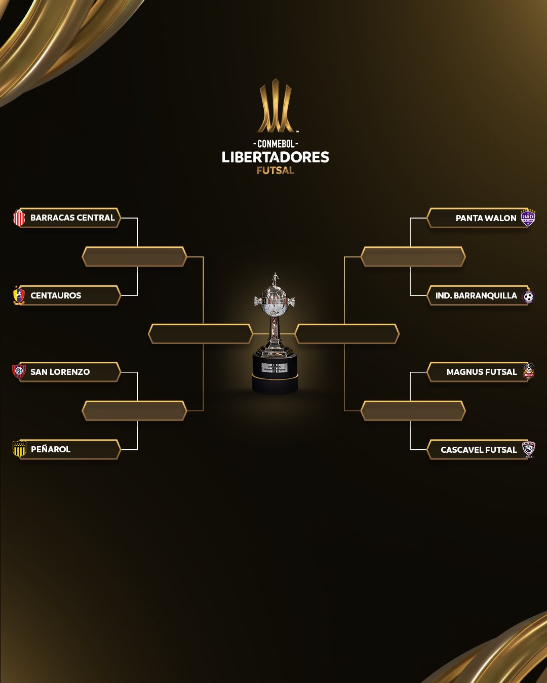 Questi i quarti di finale dove spicca il derby brasiliano tra i campioni in carica del Cascavel e il Magnus: Barracas-Centauros; San Lorenzo-Peñarol; Panta Walon-Independiente-Barranquilla e Magnus-Cascavel.
