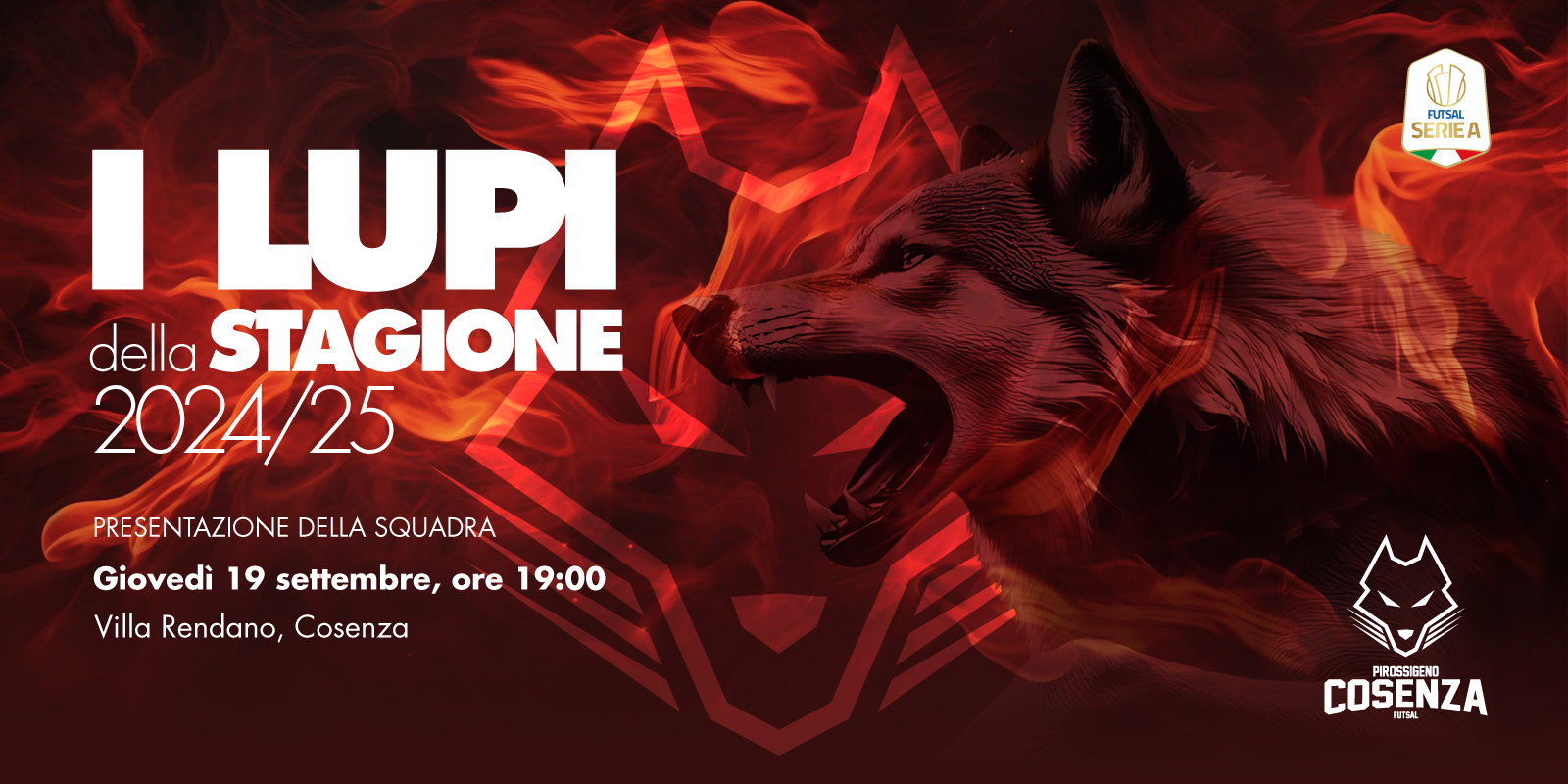 Nel corso dell'evento, che verrà trasmesso in diretta Facebook sul profilo ufficiale del club, verranno svelati gli assetti societari, lo staff tecnico e l'organico della squadra per la stagione 2024/2025, la seconda consecutiva nella Serie A di futsal. Sarà l'occasione per vedere e conoscere vecchi e nuovi lupi, per parlare delle lodevoli iniziative benefiche di We Play For You e per presentare la nascita del progetto Pirossigeno Changing Future.