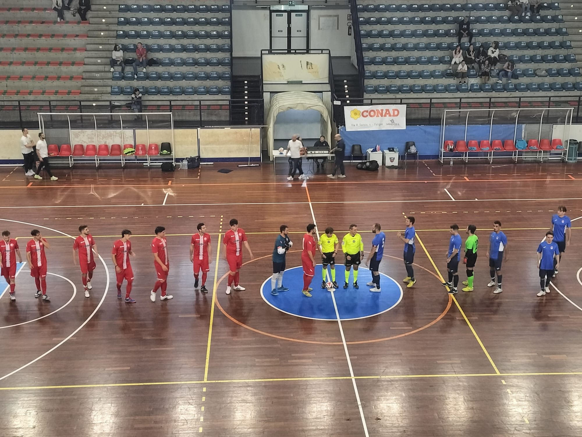 Il match sembra però indirizzarsi subito in favore degli ospiti che al primo minuto di gioco trovano il gol con Marco Matticari, sarà uno squillo isolato. Sì perché al settimo minuto Andrea Farnesi dal limite dell’area, con un mancino precisissimo, toglie le ragnatele dall’incrocio dei pali, 1-1. Da qui è valanga Real Foligno: arriva il raddoppio e la doppietta per Andrea Farnesi (11’), vanno in gol Valencia (16’) e Matteo Farnesi (18’), e in chiusura di primo tempo arriva anche il gol di Ishitsuka (20’). 5-1 alla fine della prima frazione.