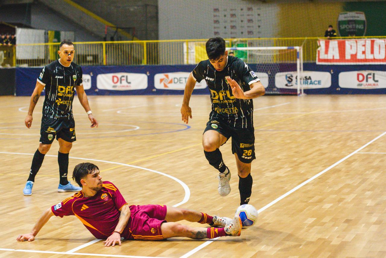 LA PARTITA - Il primo potenziale pericolo è creato dalla Roma dopo 60 secondi, transizione sulla sinistra che poi libera al tiro Biscossi con palla che termina però fuori. Dopo 5' iniziiano le rotazioni da una parte e dall'altra, con le difese però che fanno buona guardia attenuando le folate offensive dei due quintetti. Al 6' però va vicino al gol però il Sala, in quella che è la prima grande occasione della partita: arriva in corsa Rossetti il cui tiro pronto e potente termina di pochissimo fuori. All'8' punizione in due per la Roma dentro l'area non sfruttata però dalla compagine di mister Reali che pochi secondi dopo però si fa vedere con un diagonale di Fortino fuori non di molto. Poco dopo intervento su Rossetti apparso decisamente falloso di Sarmiento, il Sala reclama l'espulsione dell'estremo difensore per la chiara occasione da rete negata e il calcio di punizione, ma la direzione di gara tra le proteste dello staff del Sala e dei tifosi lascia proseguire.
