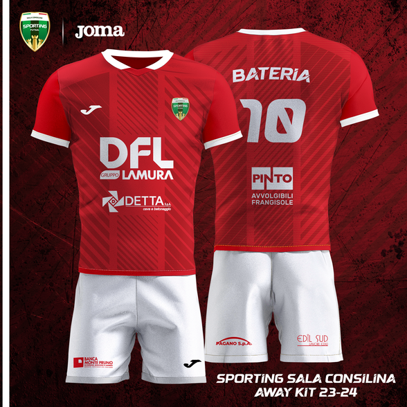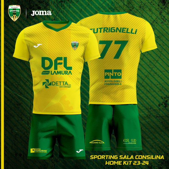 Lo Sporting Futsal Sala Consilina presenta i nuovi kit da gioco realizzati in collaborazione con Joma per la Stagione Sportiva 2023/24, le immagini sono state diffuse in anteprima attraverso i canali social societari (vedi foto in gallery).