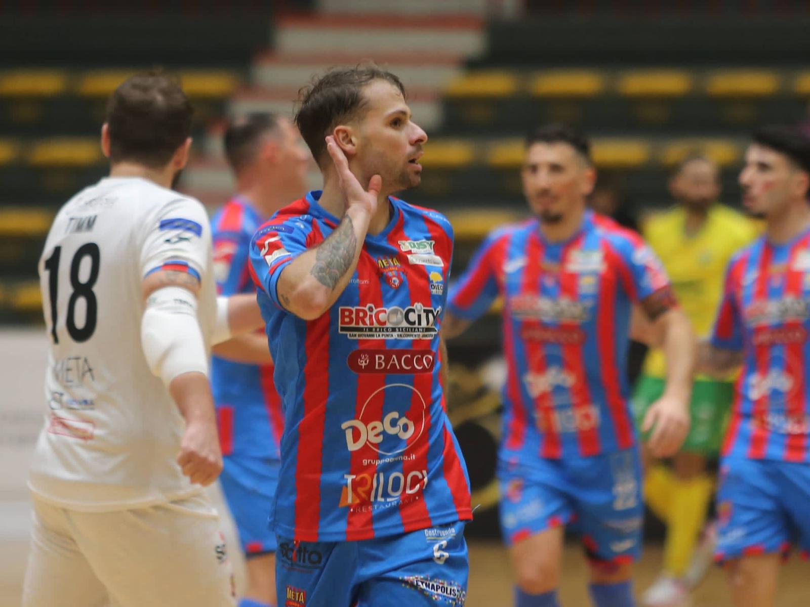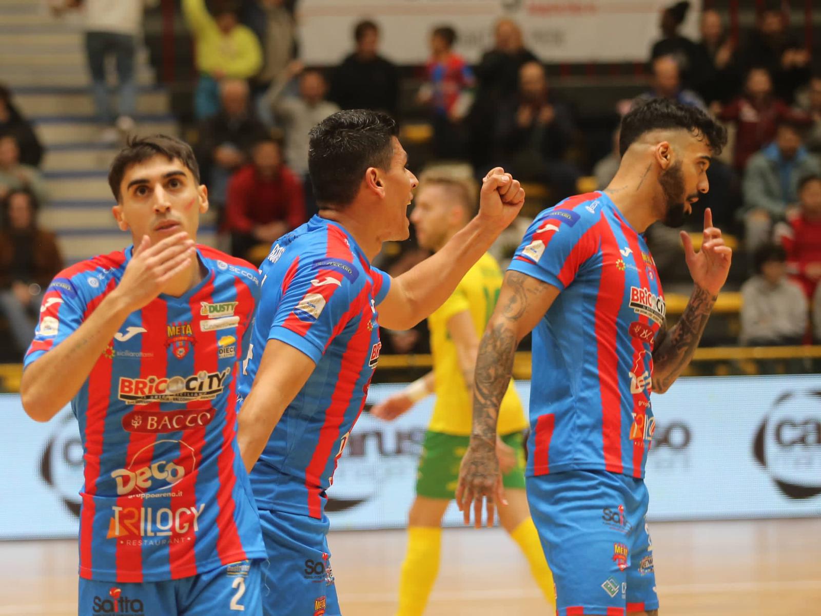 Continua a vincere e godere la Meta Catania che rimonta e ribalta una gara pazzesca e trascinata dai 1500 del Palacatania. Un 5-3 di forza e potenza che manda un messaggio al Campionato.