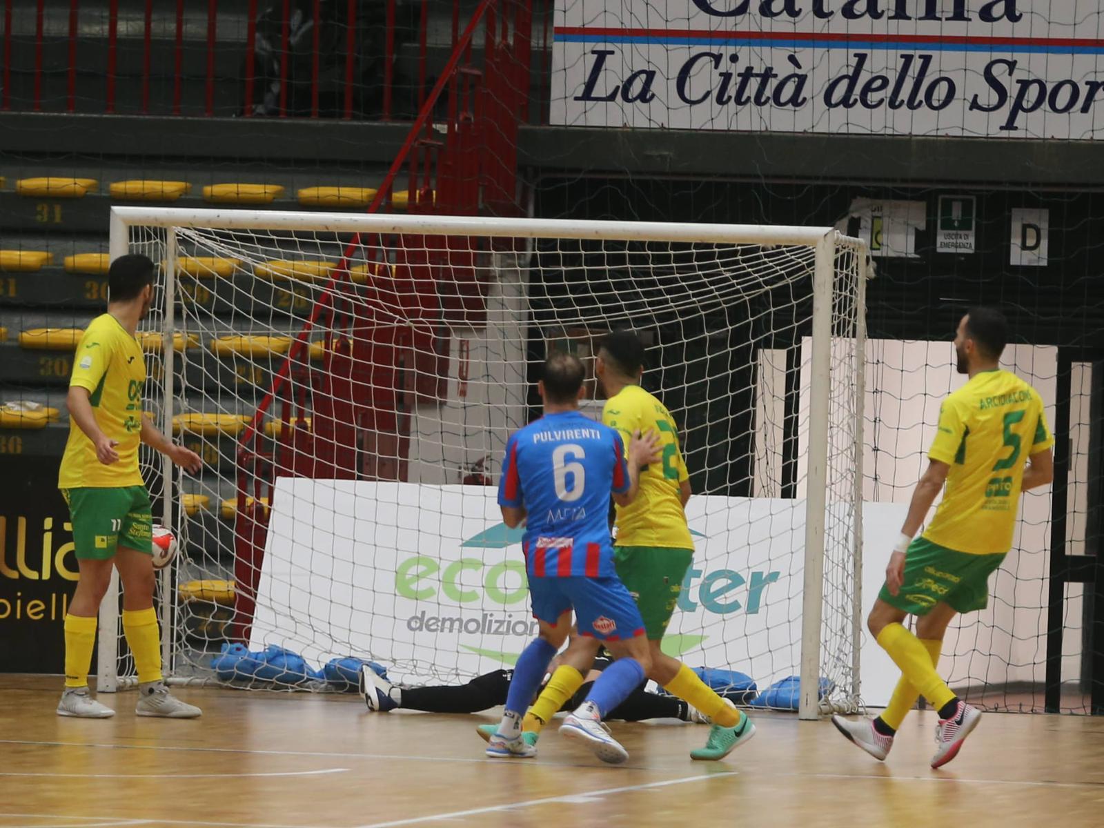 Nella ripresa onda anomala rossazzurra, e supergol del capitano Carmelo Musumeci che faceva sedere tutta la difesa del Sala Consilina e mandava in estasi il PalaCatania. Rossazzurri che continuavano a pressare e in contropiede stavolta era ancora Pulvirenti, doppietta personale, che consegnava il 5-2. Nel finale al rete di Brunelli prima dell’esplosione di gioia di un PalaCatania che trascina questa squadra e roster etneo che raccoglie la quinta vittoria e soprattutto continua l’imbattibilita’ in casa e una classifica pazzesca.