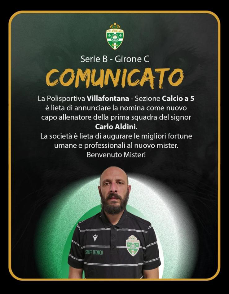 IL COMUNICATO UFFICIALE - La Polisportiva Villafontana - Sezione Calcio a 5 è lieta di annunciare la nomina come nuovo capo allenatore della prima squadra del signor Carlo Aldini.