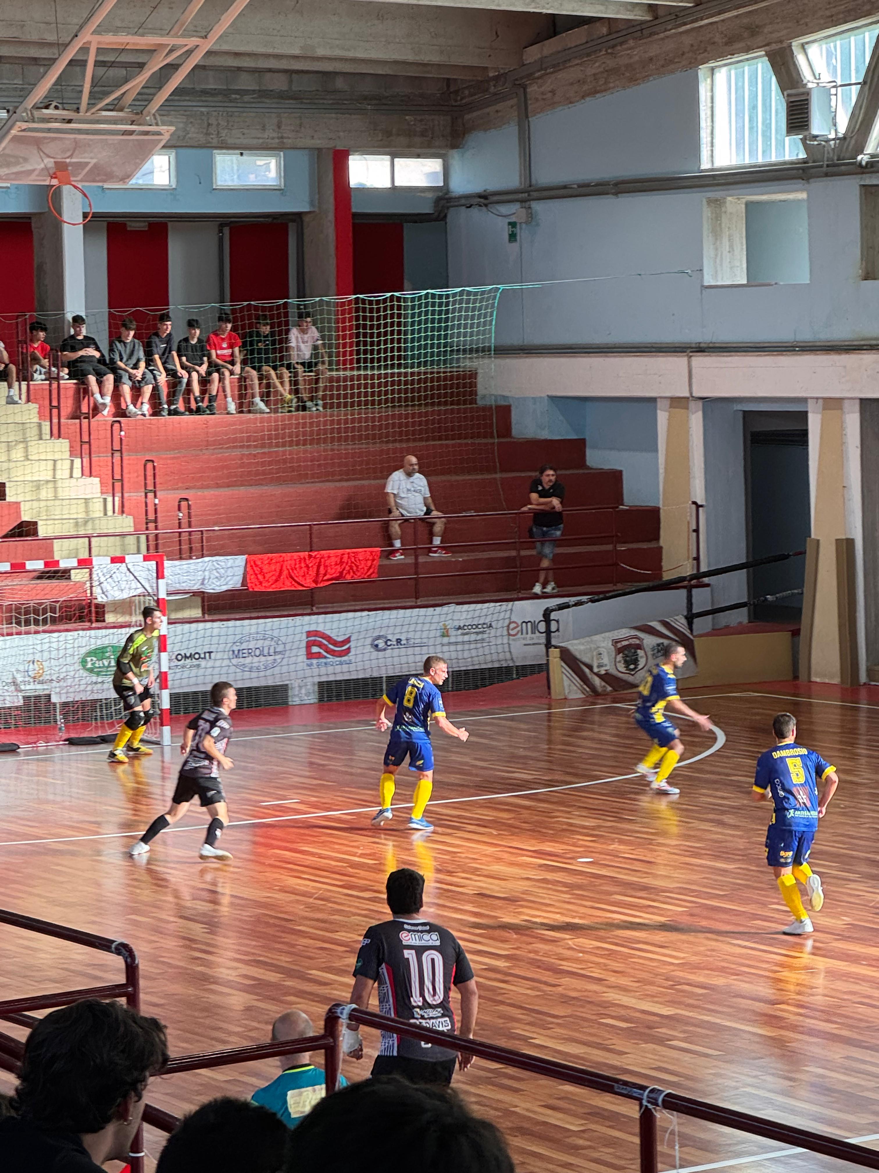 Nel secondo tempo scendeva in campo un’altra Superaequum, capace di crescere in man ieri evidente riuscendo addirittura a ristabilire le distanze grazie alle realizzazioni di Calvet, D’Ambrosio e Lancia per il momentaneo 3-3, e poi creando almeno quattro, cinque palle-gol che avrebbero potuto cambiare il risultato a favore dei gialloblù. Altro tiro libero fallito da Calvet e gol del 4-3 di Jacopo Ricci che arrivava con il Sulmona in fase avanzata con il portiere di movimento, che fino a quel momento era stato difeso benissimo dai giocatori di Cimini, che però non sono riusciti a sfruttare le diverse opportunità da rete procuratesi.