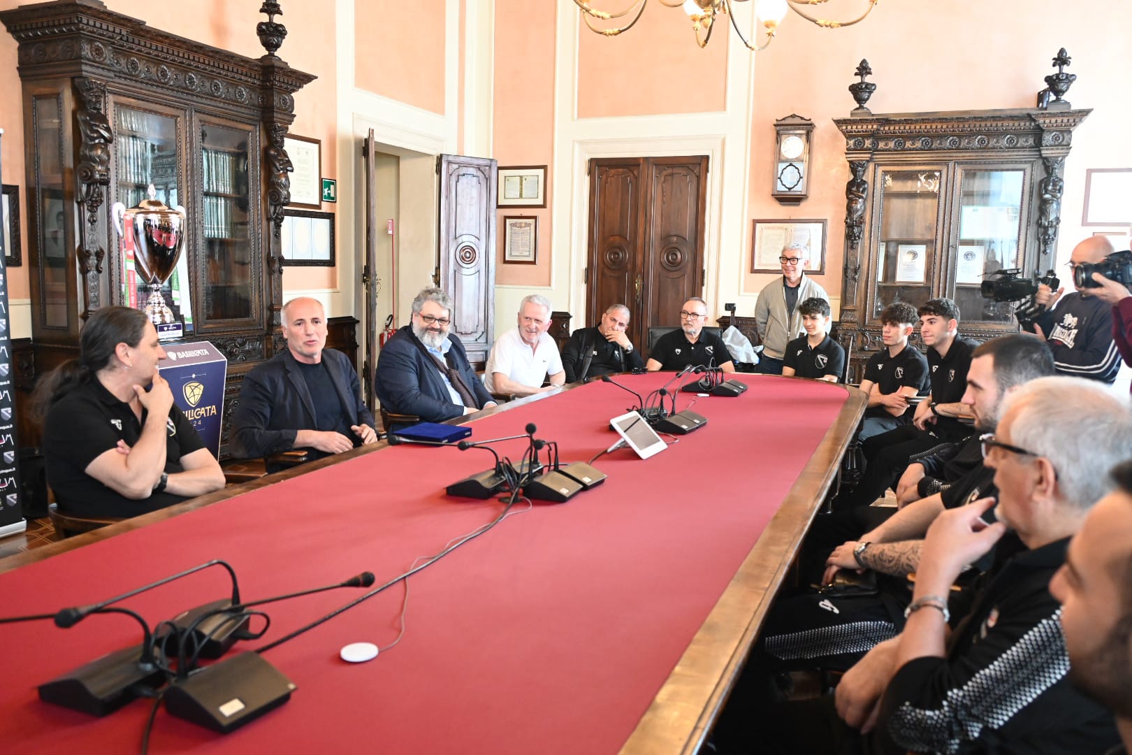 Stamattina, alle ore 12.00, tutta la squadra bianconera, a partire dal presidente Paolo Morlino arrivando alla rosa e allo staff al completo, è stata accolta presso Palazzo Moroni dall’assessore allo sport Diego Bonavina, da sempre vicino a mondo del Vinumitaly Petrarca e delle sue imprese.