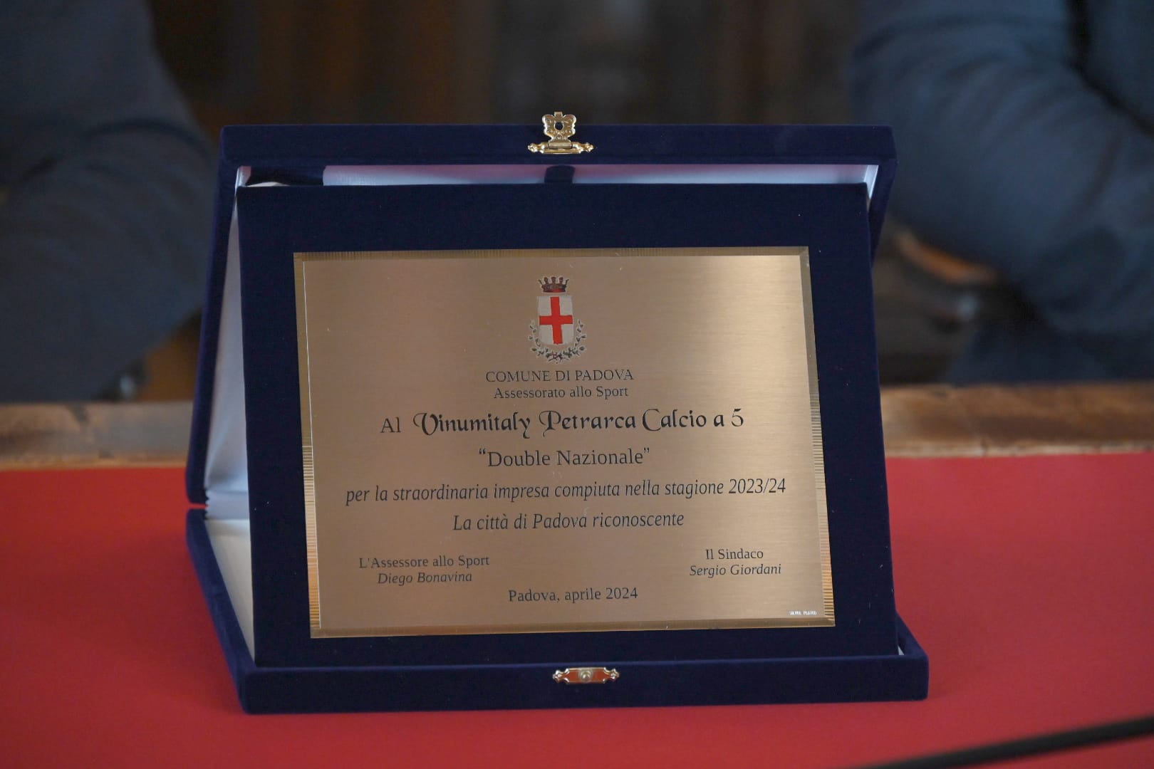 Non si fermano le celebrazioni del ritorno in Serie A del Vinumitaly Petrarca e della successiva conquista della Coppa Italia di Serie A2 Elite. Dopo l’abbraccio della Gozzano nella scorsa partita di campionato, il double centrato dagli uomini di mister Giampaolo è stato festeggiato anche dal Comune di Padova.