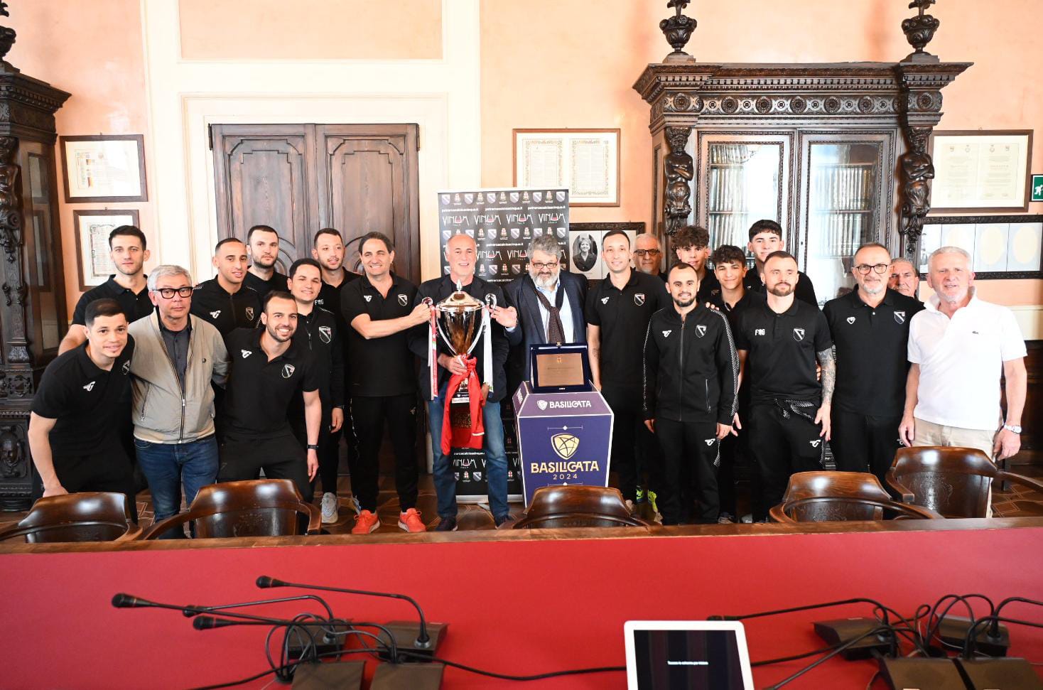 Dopo aver ricevuto un riconoscimento in Comune, c’è stato un bel rinfresco nella adiacente Piazza della Frutta dove sono proseguiti i festeggiamenti di questa stagione trionfale.